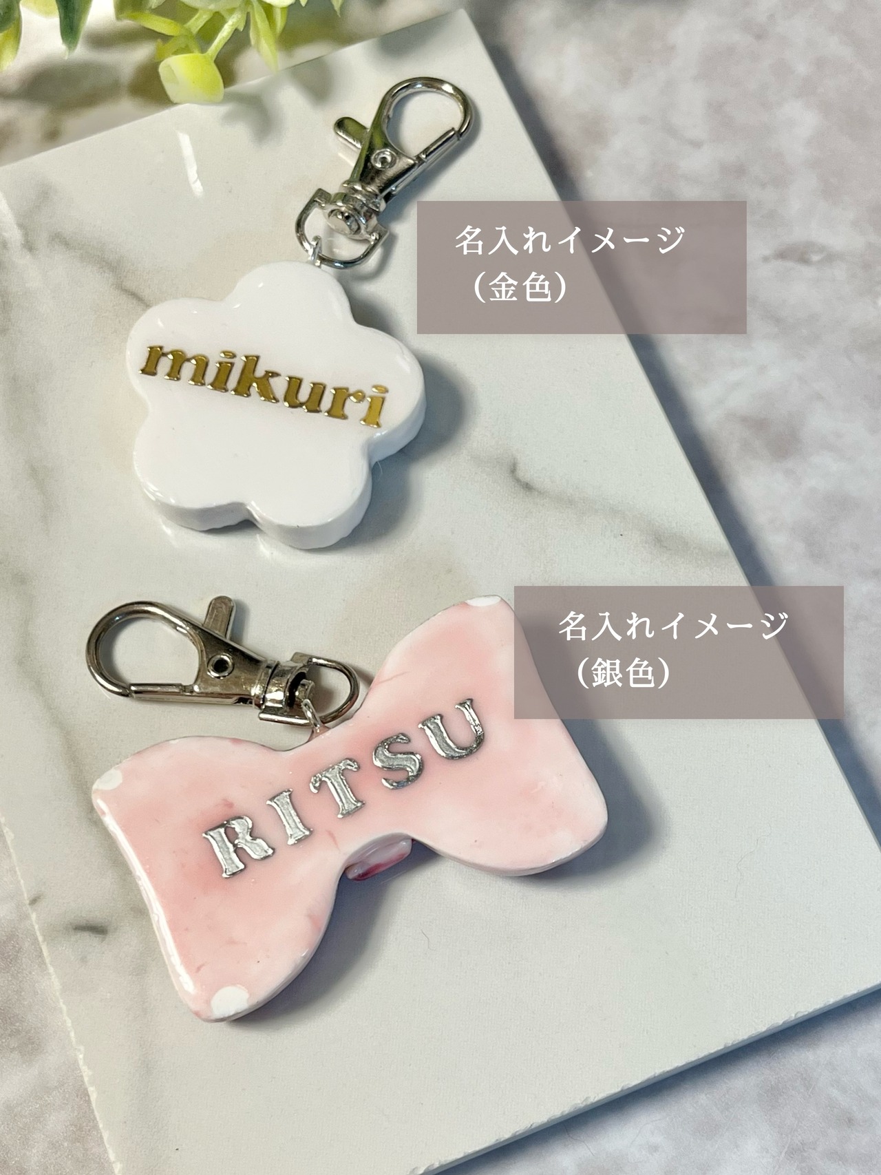 アクセサリーチャームの裏面にアルファベットで名入れが可能です。